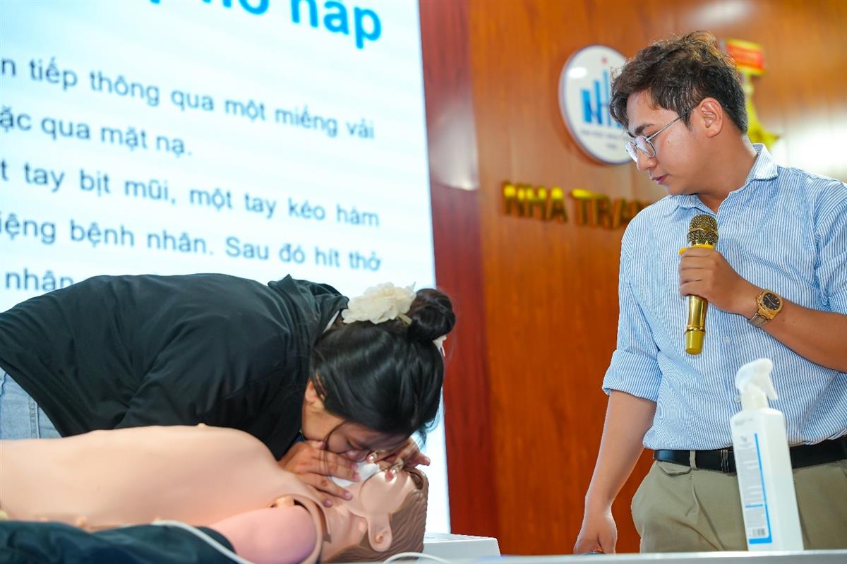 Dưới sự hướng dẫn tận tình của đội ngũ chuyên gia từ trung tâm kiểm soát bệnh tật tỉnh Khánh Hòa các em được thực hành các kỹ năng sơ cấp cứu ban đầu đối với một số tai nạn thương tích thường gặp như: đuối nước, cầm máu, tai nạn té, ngã, gãy xương và băng bó gãy xương, kỹ thuật hồi sức tim phổi….